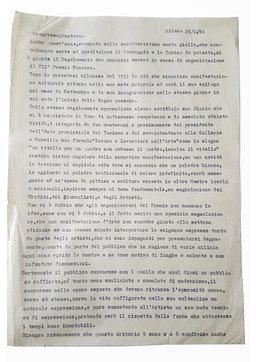 Datata 26 aprile 1954, questa lettera indirizzata alla Gazzetta di Mantova, testimonea l'energia profusa, dal sindaco di Suzzara Tebe Mignoni, per promuovere il Premio.