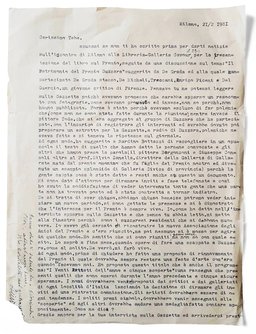 Lettera di Dino Villani per Tebe Mignoni. Il dattiloscritto fa parte dei documenti che la nipote dell'ex sindaco, Lorena Corradi ha conservato e ha voluto donare alla all'archivio della Galleria del Premi Suzzara